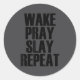 Adesivo Redondo Wake Pray Slay Repeat - Pular Motivational Quote