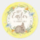 Adesivo Redondo Watercolor Bunny Spring Wildflowers Happy Easter