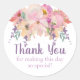 Adesivo Redondo Watercolor Floral Obrigado Favor
