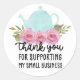 Adesivo Redondo Watercolor Floral Teapol Obrigado Pequena Empresa