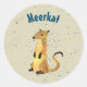 Adesivo Redondo Watercolor Meerkat num Fundo bege