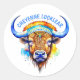 Adesivo Redondo Watercolor Native American Bison Indian Headdress