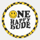 Adesivo Redondo Wavy Checkered Yellow Preppy Smile Um Cara Feliz