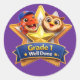 Celebrate big wins with these bold large format stickers featuring the dynamic duo hoot the owl and Rex the dinosaur inside a majestic gold star. These 3 inch round stickers are the perfect way to mark a successful completion of grade 1 milestones set against a royal purple background with a prestigious blue grade one well done banner these high-quality glossy stickers are designed to make students feel like champions ideal for teachers and parents. These stickers provide a clear impressive reward that stands out on