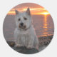 West Highland Terrier contra um Sunset da Ilha do Abrigo