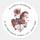 Address stickers with a cute retro style carousel horse. Drawn in Pretty pink colors with fancy flowers.