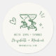 Adesivo Redondo Whimsical Hand Drawn Green Cream Wedding Thank You