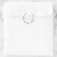 Um adesivo multiuso com uma coroa aberta feita de folhas verdes e embelezada com uma margarida branca, espécimes do gênero Bombus spp. e uma borboleta rosa. Exibido como obrigado de casamento que você cola, mas pode ser utilizado para qualquer evento. Perfeito para bolsas ou envelopes.