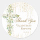 Adesivo Redondo White Floral Cross Dourado Glitter Script Obrigado