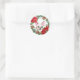 Um adorável cachorrinho branco de Bulldog francês através de uma coroa de groselha e coroa vermelha neste adesivo de Natal. Perfeito para sua correspondência de Natal ou pacotes de presentes!