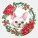 Adesivo Redondo White Frenchie Poinsettia Holly Berry Wreath