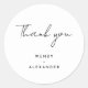 Apresentando nosso Casamento com Script Moderno Branco Obrigado design com o Clássico Round Sticker, onde o minimalismo moderno encontra a arte da caligrafia. Esta estética curada traz um ar de sofisticação para o seu dia especial - com uma reviravolta de feitiço, charme casual. A combinação de uma simples tipografia com uma letra na moda adiciona uma personalidade única ao seu casamento. Este design clássico oferece um aspecto eterno e polido que é perfeito para primavera, verão, outono ou casamentos no inverno. Uma simples paleta subestimada de preto e branco cria o cenário neutro perfeito para sua celebração. Torne seu casamento muito elegante com nossa adorável coleção de Script Moderno. Tal como acontece com todos os nossos designs, se tiverem perguntas ou pedidos especiais, por favor, perguntem.