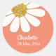 Adesivo Redondo White Retro Modern Daisy Flower Personalizado Aniv