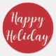 Simples adesivo vermelho com um roteiro branco ousado Feliz Feriado. Acessório perfeito para presente elegante ou embalagem de produto com um natal vintage.