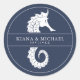 Esta elegante suíte de náutica apresenta estilo náutico clássico com um olhar limpo e minimalista. Ondas estilísticas em tons de aqua a azul marinho e uma ilustração do cavalo marinho fornecem sotaques únicos. Um fundo azul marinho com uma fina tubulação branca dá a este adesivo uma surpreendente torção moderna. Perfeito para casamentos de iates, barco, praia ou destino de verão. Procure ID836 para ver este conjunto completo e outros com sotaques de elementos marinhos alternativos.