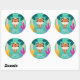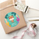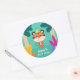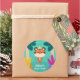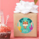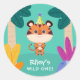 Um tigre bonitinho na selva segura um cupcake nesses bonitinhos adesivos de festa de aniversário Wild One. CORRESPONDENDO a itens na nossa loja.