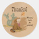 O palco clássico redondo Cowboy clássico da Rússia Ocidental selvagem destaca-se dos autocolantes típicos do aniversário de criança com o seu talo vintage e tons úmidos e úmidos. Apresentando um chapéu de cowboy, uivando coiote, e cacto do deserto, ele captura o verdadeiro charme ocidental. O design resistente do autocolante é perfeito para o partido ocidental de um menino. Este obrigado de caubói que você pega, adiciona um adeus aventureiro a cada presente de obrigado ou mala.