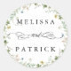 Este elegante adesivo de casamento apresenta uma coroa floral com flores silvestres de cor d'água pintadas à mão em rosa, amarelo e verde. Para uma personalização mais avançada deste design, clique no BOTÃO FERRAMENTA DESIGN AZUL acima!