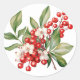 Sticker is shown in the round with a lovely winter berries watercolor print.