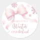 Winter onederland pink bow snowflake girl 1st birthday classic round sticker.