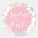 Neve muito divertida para ser um! Vinheta de Winter Onederland para o primeiro aniversário com flocos de neve rosa, dourados e prateados