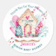 A cute winter theme baby shower party suite with cozy, snow-topped cottage, nestled in a gentle winter scene. Adorned with delicate pink love hearts, playful gifts, and sweet candies, the design evokes a feeling of joyful anticipation. Designed in a modern teal and soft pink color scheme, making it a perfectly versatile choice for a baby boy, girl, or a sweet surprise.