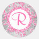 Este elegante, monograma, cor-de-rosa-gelo redondo de 1,5", floral de cinza prateada FAUX, cor damasco brilhante Bat Mitzvah, ou selo de envelope tem um fundo de vários flocos de neve brancos que correspondem aos convites Bat Mitzvah mostrados abaixo. Você pode mudar a inicial para a sua própria, e também pode mudar o tamanho e/ou a forma do adesivo, embora, para obter melhores resultados, por favor, envie-me um e-mail para mudar a forma. Se você precisar de outros itens correspondentes neste design, envie seu pedido por e-mail para niteowlstudio@gmail.com.