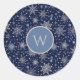 Add a frosty touch to your belongings with this charming winter snowflake round sticker. Featuring an enchanting array of snowflakes on a deep blue background, it brings seasonal elegance to any surface. Perfect for sealing envelopes, decorating favors, or personalizing items, this versatile adhesive appeals to anyone who loves winter charm and a touch of sparkle.