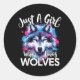 Adesivo Redondo Wolf Face Apenas Uma Menina Que Ama Lobos