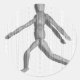 Manequim macho de madeira com linhas onduladas de largura diferente criando a imagem. Design original em preto e branco.