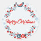 Este adesivo redondo clássico apresenta um design de coroa festiva perfeito para adicionar um toque de alegria de férias a qualquer item. No centro, as palavras "Feliz Natal" são escritas numa letra corajosa e cursiva numa matiz vermelha alegre, capturando a essência da alegria e do calor da estação. A saudação, um conjunto decorativo de flora de inverno, incluindo os bagos vermelhos, as folhas verdes escuras e as charmosas flores azuis, cria um motivo tradicional de coroa. Dois pássaros estilizados, detalhados com padrões de inspiração folclórica, se abraçam graciosamente sobre a coroa, acrescentando um senso de vida e movimento à design. O fundo é aspergido com flocos de neve delicados em dois tons de azul, criando um sutil contraste contra a base branca do adesivo. Este design de adesivo combina o simbolismo clássico de Natal com um toque de elegância rústica, ideal para personalizar o empacotamento de presentes, cartões de saudação ou favores de festas de férias.