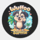 Adesivo Redondo Wuffoo Surffie Cute Kawaii Puppy Tropical Island