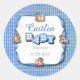 Adesivo Redondo Xadrez Azul com Ursos Bebês | Chá Baby Boy