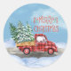 Precisa de um bonitinho adesivo de Natal Feliz? Experimente estes adesivos de Natal com legal coloração d'água com um caminhão de xadrez de búfalo vermelho e preto dirigindo por um carregando de rua cheio de neve árvores de Natal. Mensagem de Natal feliz. Excelente para um retrô, visual e sensação de férias vintage. Design de unisex para homens e mulheres. Adequado para crianças e adultos.