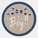 Adesivo Redondo Xadrez de Búfalo Preta + Azul É um Chá de fraldas