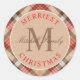 Adesivo Redondo Xadrez de Natal Rustic Tan Red Tartan Monograma