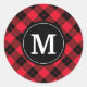 Os adesivos russos personalizados de feriado apresentam um padrão de xadrez de búfalos vermelho e preto rústico com um marcador de texto no centro para o seu monograma ou inicial. Use os adesivos de na moda como selos de envelopes, etiquetas de presentes, favoritos para festas e muito mais!