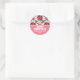 Adesivo Redondo Xadrez Floral de Natal Rosa Rosa Feliz Natal Feliz
