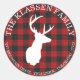 © 2018 Designs e LICENCORS socialitos. Coloque os envelopes de Natal, presentes ou favores com este adesivo de design de xadrez preto e de búfalo vermelho. A design criativa também tem o texto 'JOY' e um design de cabeça de veado.