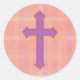 Adesivo Redondo Xadrez rosa-vindima com cruz roxa