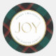 Apresentando a Xadrez de Tradição Joy Round com design vermelha e verde clássica, que imediatamente evoca a atmosfera acolhedora e tradicional da época de férias. Os adesivos adicionam um toque encantador aos envelopes do cartão de Natal. A palavra Joy é impressa em folha de ouro simulada, e seu nome segue a curva do adesivo em uma letra elegante legível.