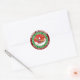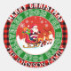 Xadrez vermelha de búfalo personalizada Papais noeis de Natal alegres, engraçados do poleClassic Round Sticker. Personalize este adesivo fabuloso com seu nome/texto. Tema- engraçada, xadrez vermelha de búfalo, verde vermelho, papais noeis, queda de neve no inverno, simples, rústica, vintage, personalização, renas, celebração festiva, Criado por Artfulz!