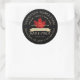 Adicione o nome, endereço e volume da sua empresa. Rótulo preto elegante com texto dourado pálido e folha de bordo vermelha de açúcar.