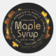 Edite o nome do seu estado, produtor, localização, grau e uma descrição, como "madeira disparada" ou "local" ou "colada à mão", etc. Na parte inferior direita do rótulo, você pode escrever o número do lote e a data de colheita do seu xarope de mapeamento, ou pode excluir esse texto. As coloridas folhas de açúcar no outono rodeiam o texto do rótulo. As palavras "Xarope de Maple" são escritas com o texto "gravado". Uma borda que se parece um pouco com a costura manual circula o texto e adiciona um olhar antiquado para o rótulo.