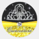 Adesivo Redondo Yellow Black Princess Tiara Quinceanera Bling