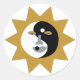 Um sol ouro com seu rosto em um yang preto e branco chorando em um adesivo