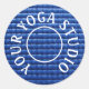 Palavras personalizadas se enrolam em torno do adesivo redondo.