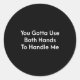 Adesivo Redondo You Gotta Use Both Hands To Handle Me Humor Quote