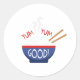 Esta tigela de arroz é servida em uma tigela azul clássica e paus. Que decoração divertida para seus projetos relacionados à comida.