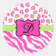Adesivo Redondo zebra branca rosa-quente Monograma inicial da pele